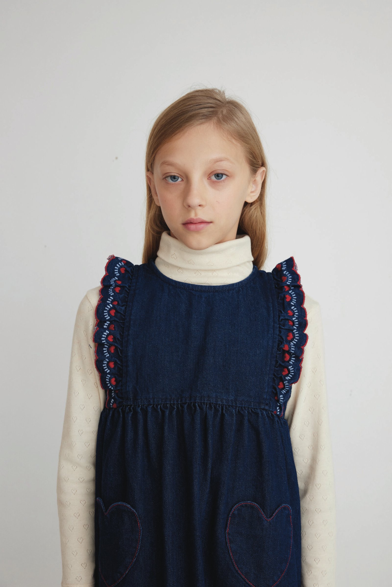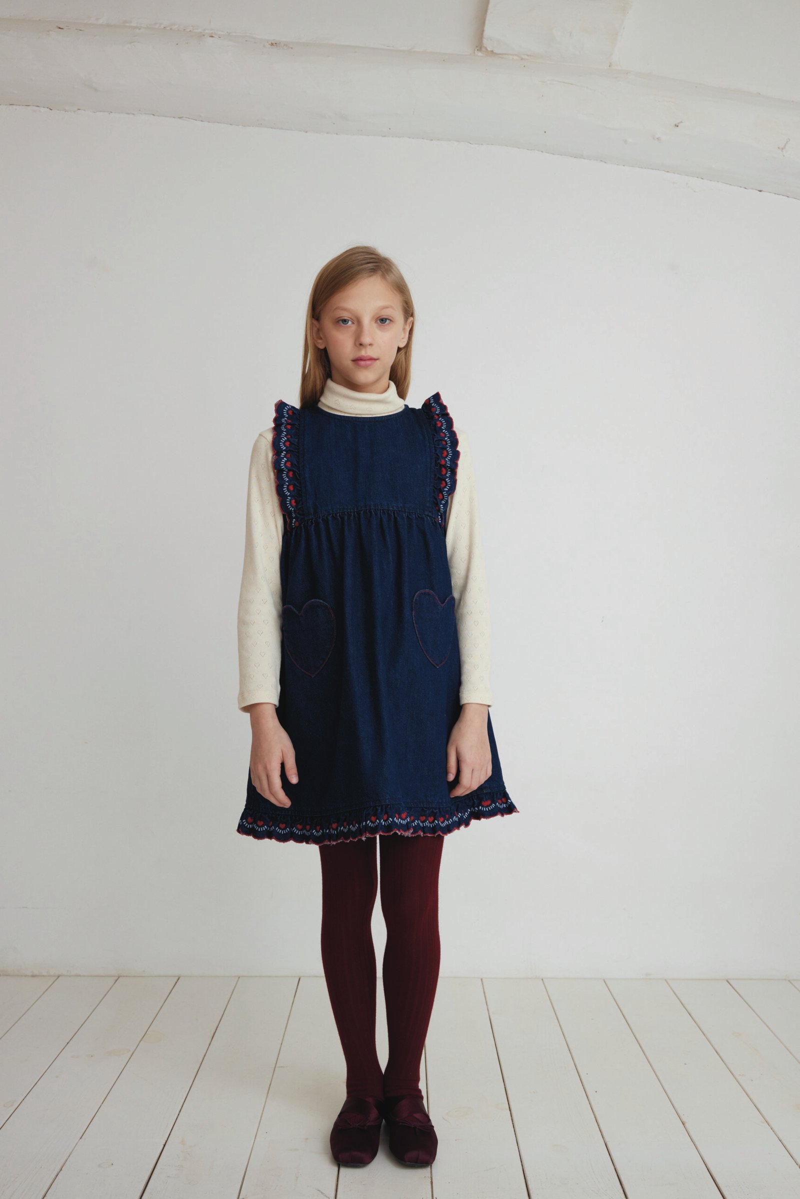 Ar tik mes šį sezoną įsimylėjome širdeles? Žavinga sarafano tipo suknelė "Tessa" pasiūto iš itin minkšto tamsiai mėlyno džinso. Subtilūs raukiniai, dailiai išsiuvinėtos širdelės bei širdelių formos kišenės paverčia šią suknelę išties ypatinga. Sukurta galvojant apie patogumą, ji yra laisvo kirpimo, tad puikiai tinka tiek kasdieniams žaidimams, tiek ir ypatingoms progoms. Tikras must-have stilingam rudens–žiemos sezonui! Sudėtis: 100 % organinė medvilnė Priežiūra: Skalbti skalbimo mašinoje 30º C temperatūroje, džiovinti džiovyklėje žemoje temperatūroje, jei reikia, lyginti šiek tiek drėgną. Nebalinti ir nenaudoti oksidacinių medžiagų. Rekomenduojama naudoti aplinkai draugiškas skalbimo priemones. Dydis: Patogus laisvas kirpimas. Dydžiai nurodyti metais, rinkitės artimiausią jūsų vaiko amžiui.